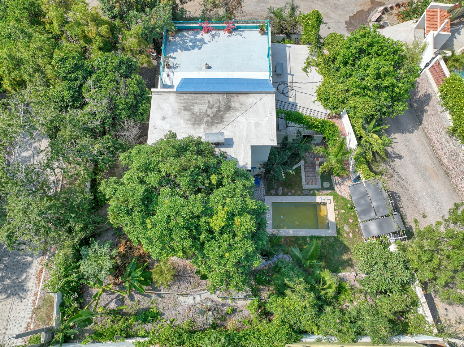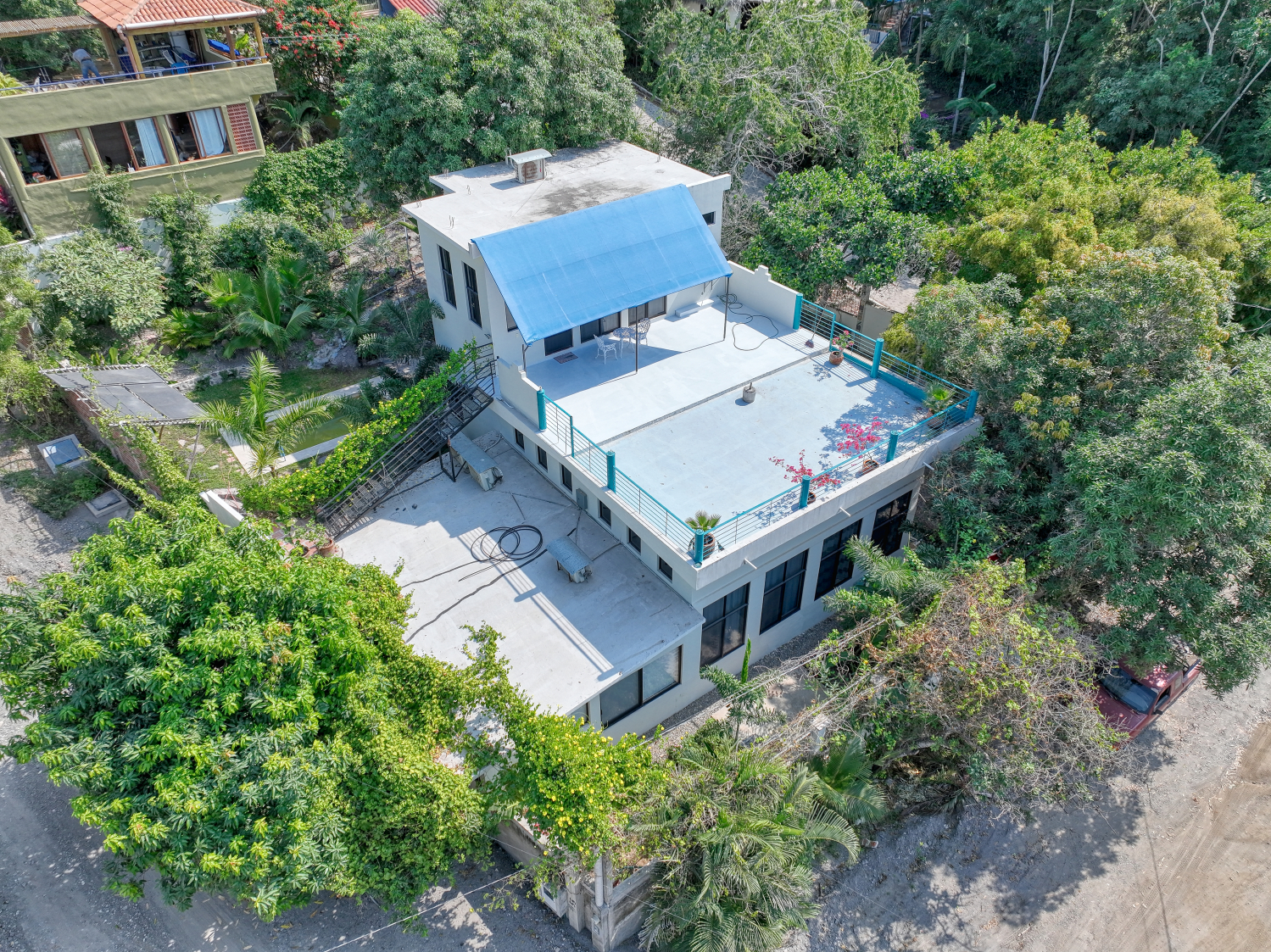 The house sits on 684 m2 of land, has three street fronts and consist of three levels, in the first level there is the master bedroom with a full bathroom, main kitchen, living room, dinner area, half bathroom and an storage area; in the second level or midlle level there are a bungalow with bedroom, kinchen, livingroom, dinner area and a full bath room, in this middle level is the pool area and a lush garden; in the last level there area a bungalow with bedroom, kitchen, living room, dinner area and a full bathroom, also at this last level there is a great terrace with partial oceanview, the bungalow of last level could be rented by separatelly; this property could be for a big family or like a income property renting the first level and the two bungalows by separatelly each unit; Casa Bauhaus has all the services - water, electricity, septic sewage, phone, internet, with many recent upgrades.
